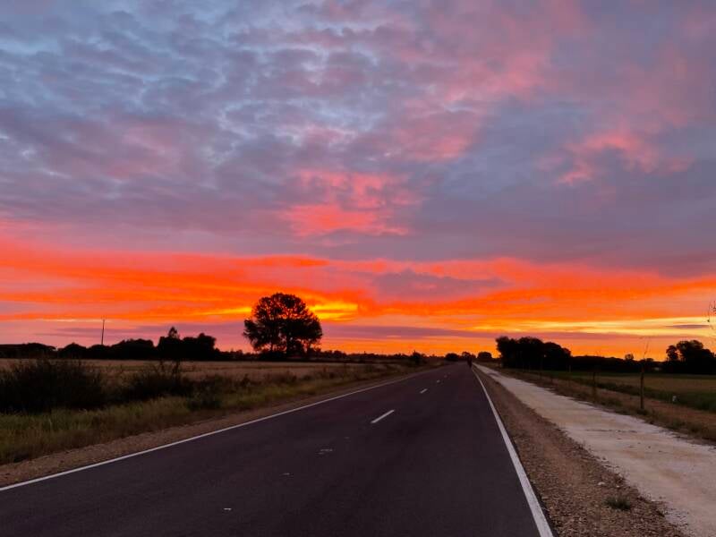 So this was my view this morning as I set out at 7am on my own. Greg has a really bad foot and can't put any weight on it so I am for the first time since I was 18 years old, alone in a foreign country. It feels amazing. It is an easy road today which is straight for 30 km with a few diversions through villages. There were other walkers/pilgrims to talk to but I wanted to just listen to my audio book and take in the scenery. Felt awesome when I finished and booked myself into the hostel and waited for Greg. (Ps there are no filters on the photo )
